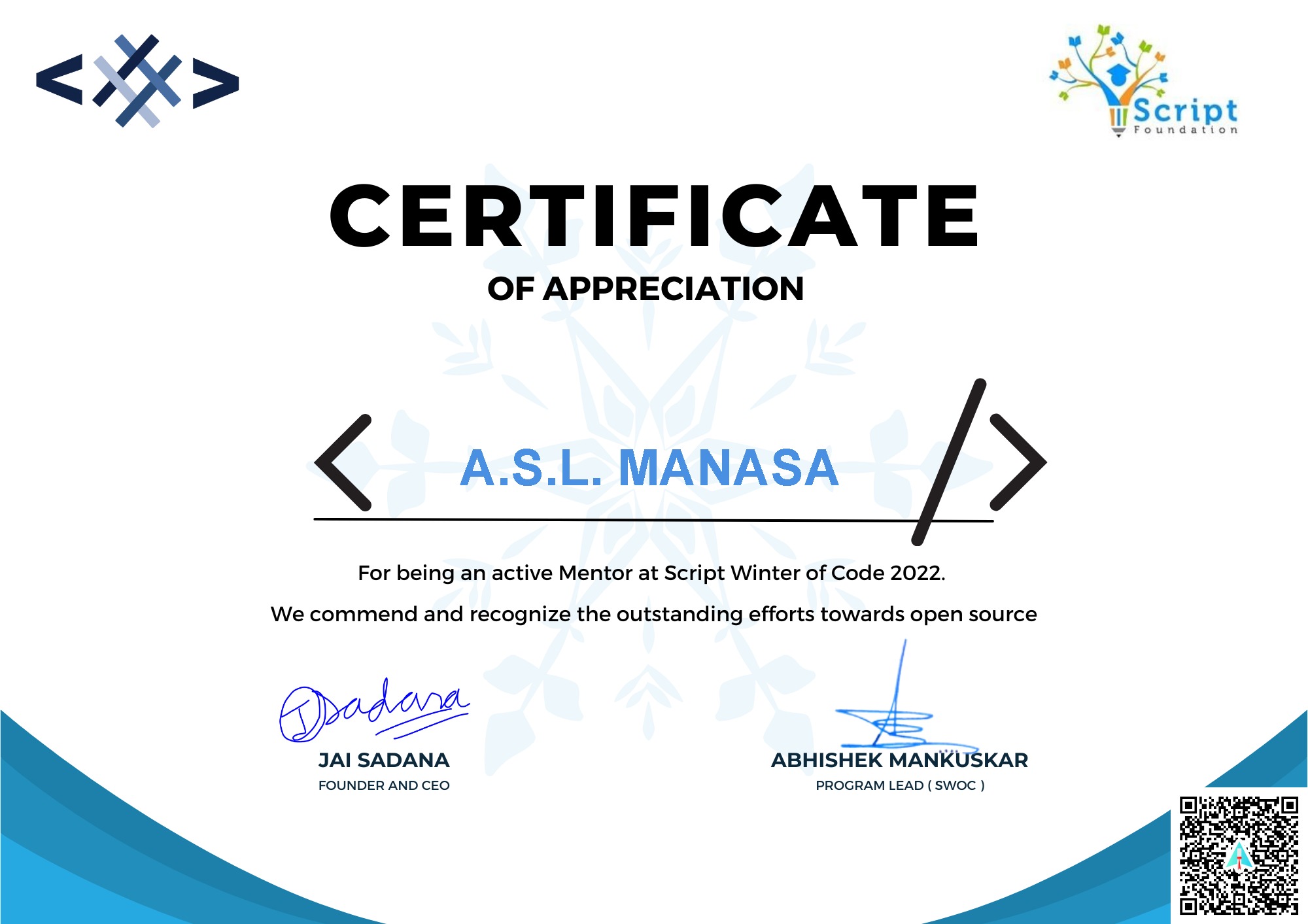 Top Mentor - Script Winter of Code